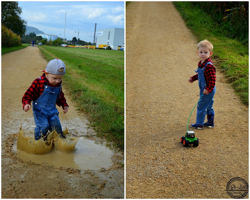 – pozwalam małemu taplać się w kałużach, mieszać i ryć rączkami (zabieram wtedy buty na przebranie bo kalosze pływają 🙂 )