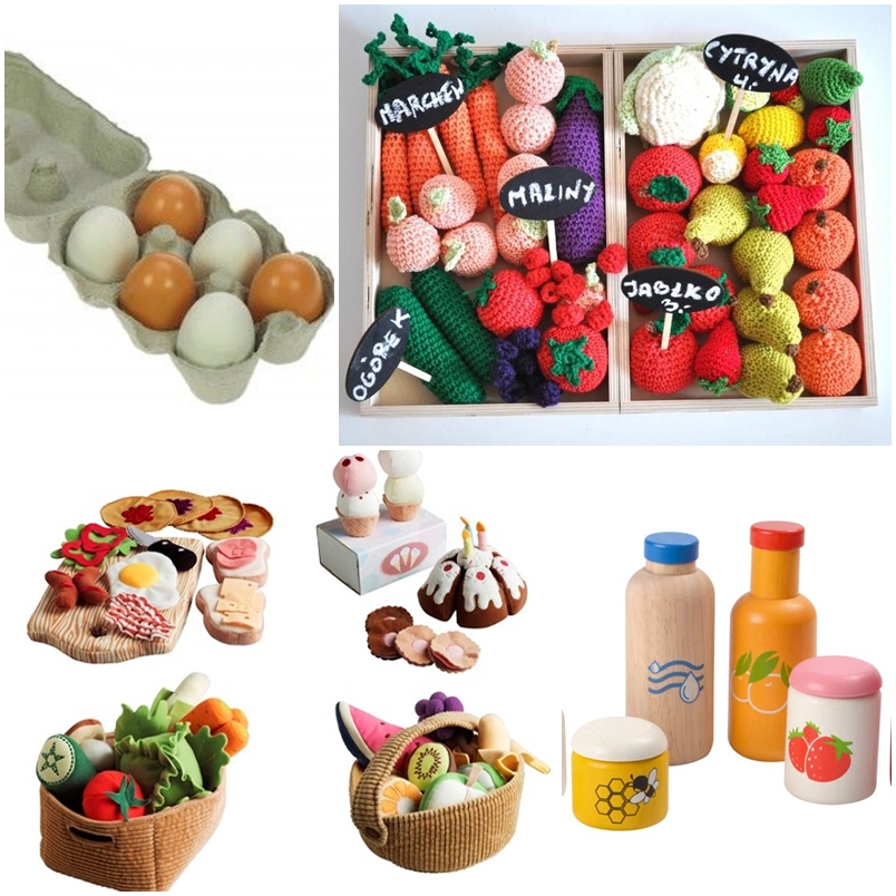 Ja i mój mały kucharz niezmiennie od 2 lat zachwycamy się produktami z Ikei, są starannie wykonane i niezniszczalne. Ostatnio natknęłam się też na drewniane jajka – to jedna z niewielu rzeczy, której w naszej kuchni brakowało. Swoim wdziękiem zachwycają także szydełkowe pyszności czy wykonane z filcu – to małe dzieła sztuki, którymi aż miło się bawić.