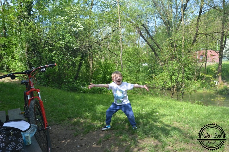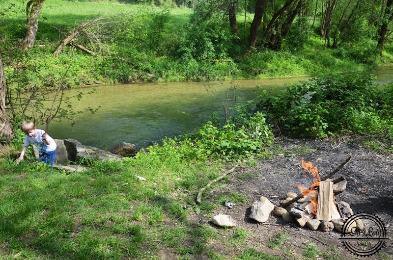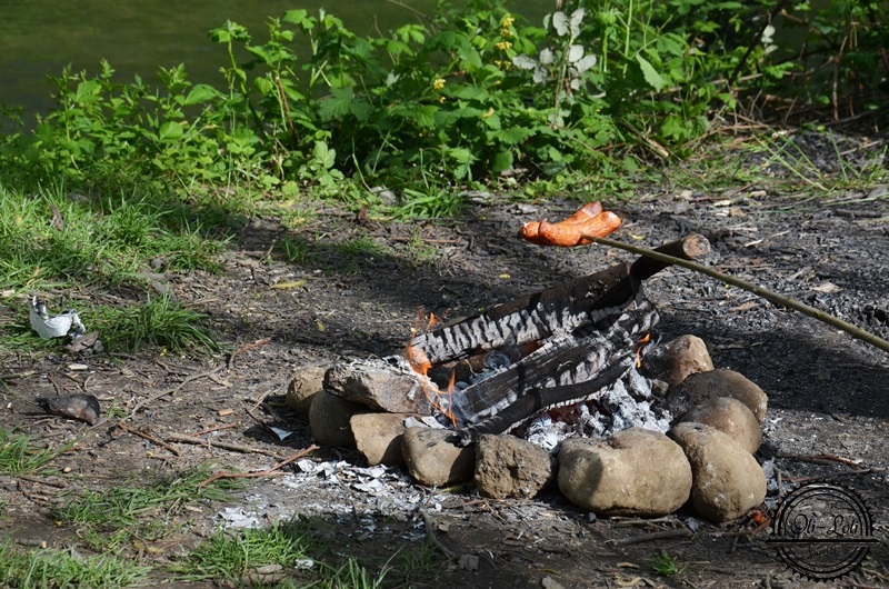 Pewnego dnia to mnie coś tknęło, podrzuciłam temat Ślubnemu i oboje z wielkim entuzjazmem wybraliśmy się nad rzekę by zrobić ognisko; prawdziwe ognisko, bez oszukanego grilla turystycznego. Uśmiech Oliwiera bezcenny! Zbierał patyki, pomagał rozpalić ognisko, pilnował by kiełbaska się nie spaliła. Zawijaliśmy ją potem w kawałek chleba i wcinaliśmy jak za dawnych lat, popijając słodką oranżadą. Na koniec wrzuciliśmy ziemniaczki w żar – to dopiero smak!