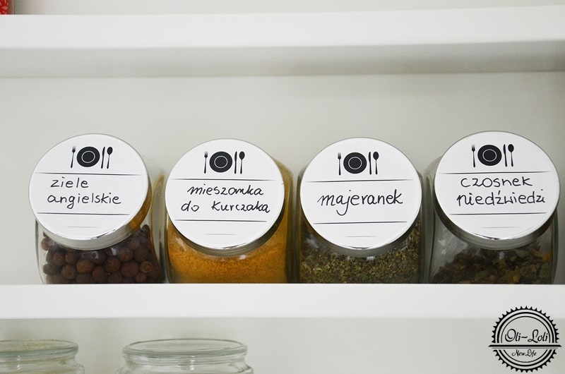 Słoiczki oznakowane naklejkami wyglądają po prostu pięknie! Fajne małe słoiczki (np. z Pepco) oklejone nazwami zawartości znacznie ułatwiają pracę i identyfikację podobnych do siebie przypraw. Od kiedy Ślubny stał się stałym bywalcem kuchni, nie wyobrażam sobie by słoiczki nie były oznaczone. Na początku, bowiem, otwierał prawie wszystkie i szukał po zapachu, tego, czego potrzebował.