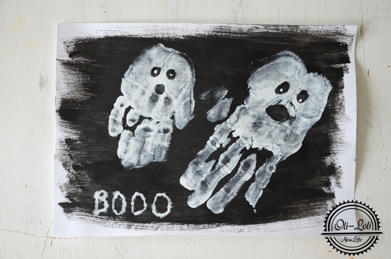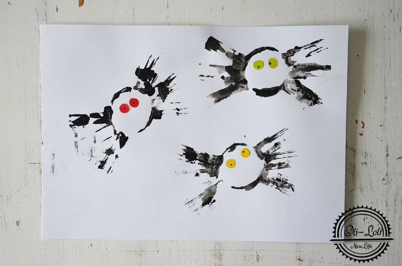 biało, a następnie odcisnął paluszki imitujące oczy i usta. Gdy