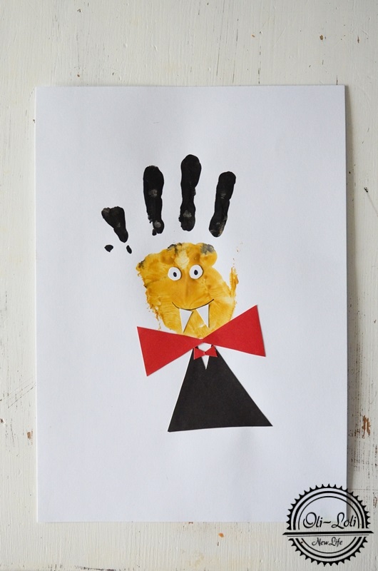 jasnym kolorem, a palce czarnym – odciskamy na kartce, a następnie