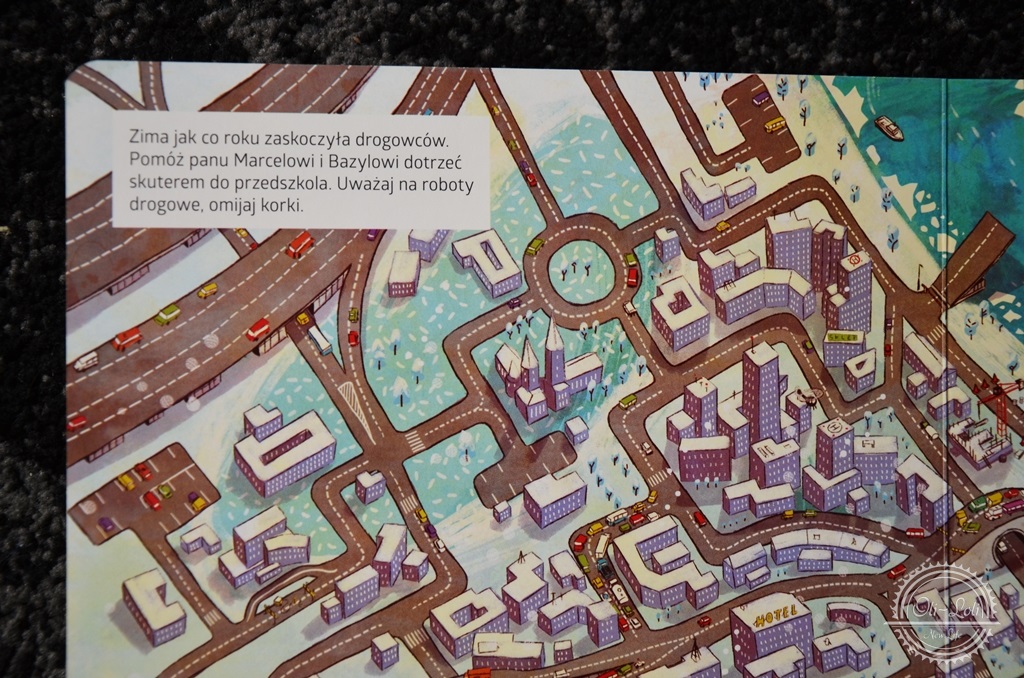Tak jak drogowców śnieg, tak i nas zaskoczył labirynt umieszczony w książce – Oliwier bardzo lubi takie łamigłówki i przyznaję szczerze, że szybciej ode mnie odnalazł drogę 🙂 Zwykle gdy urządzamy sobie grę w wyszukiwanie czegoś konkretnego to on szybciej odnajduje wymienioną przeze mnie rzecz czy osobę. Pobawcie się tak z dziećmi! U nas królują dwie gry w kilku różnych opcjach: