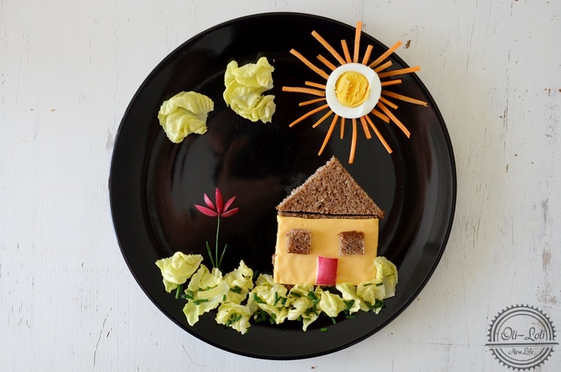 zależności od tego co dziecko lubi. W domu mamy większe pole do popisu, jeśli tylko znajdziemy chwilę! Wystarczy powycinać różne kształty, ułożyć warzywa i owoce w konkretny wzór lub nawet poprosić dziecko by wymyśliło co ma się na tym talerzu znaleźć (choć ta opcja jest nieco zgubna 🙂 Oliwier wymyśla czasem trudne rzeczy i muszę się solidnie produkować by odtworzyć jego wizję).