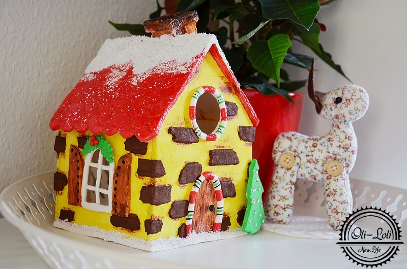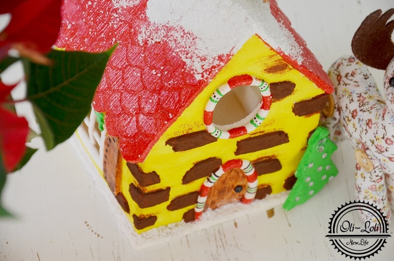 Domek już po złożeniu elementów wygląda bardzo dobrze, a po malowaniu to po prostu bajka! Samo dekorowanie sprawiło mi niebywałą przyjemność; jakbym wróciła do czasów dzieciństwa i szykowała wyjątkowy prezent dla kogoś bliskiego. Kolory możecie oczywiście dobrać indywidualnie; mój zamysł był całkiem inny ale w ręce wpadła mi żółta farba i poszło 🙂 Na dach nałożyłam grubszą warstwę gęstej plakatówki i sztuczny śnieg aby nadać chałupce bardziej świątecznego wyglądu. Całość malowana była plakatówkami z ikei i zabezpieczona lakierem.