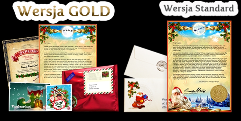 – pakiet Gold (list, dyplom, pocztówka, naklejka, ozdobna koperta)