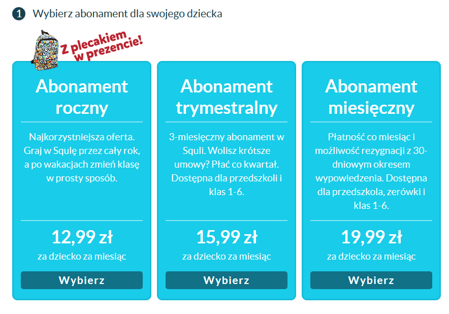 Abonament kosztuje tyle co nic i jest najlepszą inwestycja jaką możecie zapewnić dziecku. Myślę, że będziemy korzystać tak długo, jak Oliwier będzie miał na to ochotę. Serwis jest wolny od reklam i przemocy, a dostępne materiały są zgodne z oficjalnym programem nauczania. Wypróbować Squlę możecie tutaj: https://www.squla.pl/