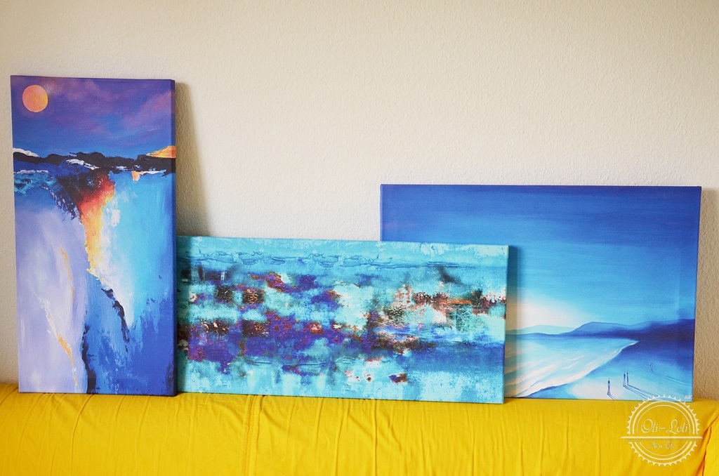 Na ścianie wręcz muszą znaleźć się jakieś obrazy lub plakaty, ich dobór zależny jest właściwie jedynie od Twojego gustu i upodobań. Ja postawiłam na dwie fajne marki, które poznałam przez przypadek, a które idealnie wpisały się w moje morskie klimaty. Cudowne obrazy z pejzażami w odcieniach błękitów przewijały się na moim monitorze jak film. Najbardziej zaskoczyła mnie możliwość wyboru rozmiaru! To bardzo, bardzo praktyczna opcja: sklep bowiem dostosuje wybrany przez Ciebie produkt do Twojego wnętrza. Rozrysowałam sobie wcześniej co ma się znaleźć na ścianie więc oczywiście chętnie z tej opcji skorzystałam.