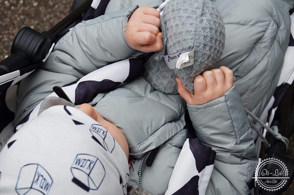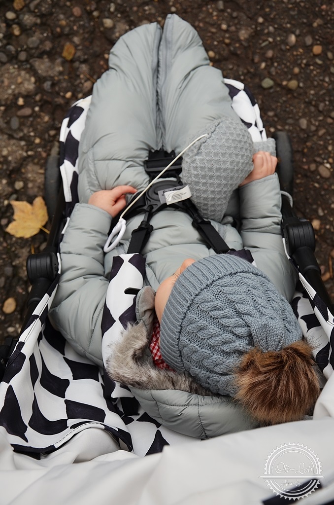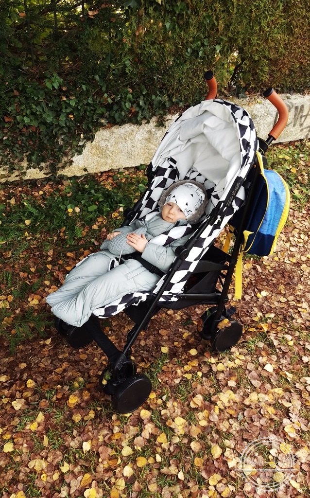 Jest to właściwie kombinezon do fotelika samochodowego, który zapewnia bardzo wygodne podróżowanie; podczas jazdy rozpinamy zamki i dziecko nie gotuje się w aucie – natomiast gdy wychodzimy nie trzeba już w pośpiechu ubierać malucha, a jedynie zapiąć zamki kombinezonu i gotowe! Dzięki zastosowaniu kilku zamków możemy z pokrowca na nóżki zrobić kombinezon, uchylić górę by dziecko się nie zagrzało. My tej funkcji używamy nader rzadko, po prostu wszędzie wędruję piechotą (wiecie: mrozy, wiatr czy deszcz nam nie straszne bo chcemy wzmacniać odporność). Myślę jednak, że gdy zrobi się zimniej będzie okazja skorzystać z auta i kombinezonu jednocześnie.