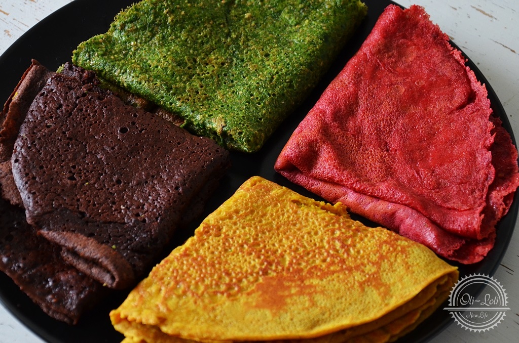 Składniki łączymy za pomocą miksera, naleśniki smażymy na rozgrzanej patelni – na niewielkiej ilości oleju. Aby uzyskać konkretny kolor do masy dodaj poniższe dodatki.