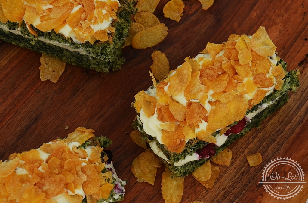 Oliwier uwielbia “kosmiczne” zielone ciasto, które na myśl przywodzi mu bajki o zielonych stworkach. Chrupiąca pierzynka to ciekawa odmiana i wierzę, że i Waszym gościom się spodoba.