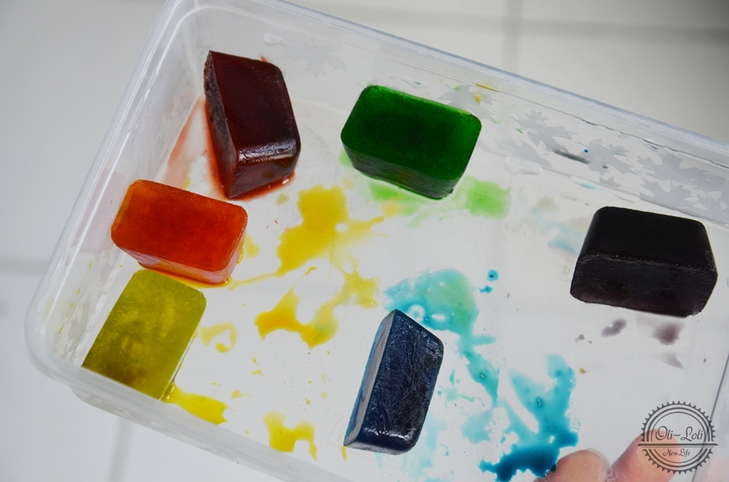 Pozostając w temacie sztuki przygotuj foremkę do robienia kostek lodu. Nalej wodę i do każdego otworu wsyp/wlej nieco kolorowego barwnika. Wstaw foremkę do zamrażarki na minimum 4 godziny. Gdy woda zamarznie wręcz dziecku kolorowe kostki i dużą kartkę papieru, po której może malować. Uwaga! Zwróć uwagę czy użyte przez Ciebie barwniki nie farbują skóry; jeśli tak, wyczyścisz ręce sokiem z cytryny – możecie też ubrać gumowe rękawiczki 🙂
