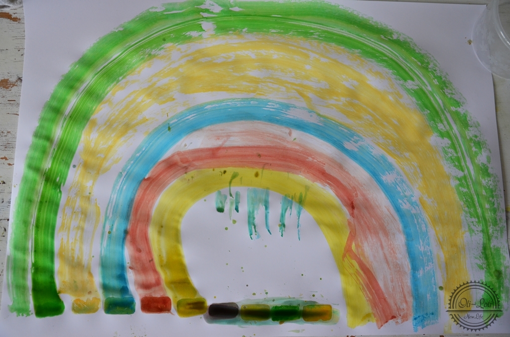 Na płaskie naczynie, pudełko lub talerzyk wylej trochę wody – tak, by pokryć dno. Umieść pojemnik w zamrażarce lub na balkonie/parapecie. Gdy woda zamarznie wręcz dziecku wodne farby i stwórzcie razem cudowne, lodowe dzieło. Kolory będą się “rozchodzić” po lodzie w niekoniecznie kontrolowany sposób, dzięki czemu powstanie coś na prawdę wyjątkowego. Tabliczkę wystarczy opłukać pod zimą wodą i można malować po niej kolejny raz 🙂
