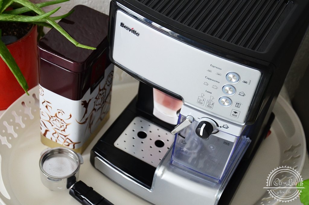 Specjalnie zostawiłam go na koniec bo właśnie taki ekspres sprawiłam sobie, gdy mój przelewowy wyzionął ducha. Gdy staruszek zaczął działać jakoś dziwnie, wydawać dźwięki nie pasujące do danego trybu i sączyć kawę całą wieczność; wiedziałam, że niebawem się z nim pożegnamy. Miałam czas na poszukiwania czegoś nowego i przemyślenia jakich funkcji bym oczekiwała. Mój wybór padł na kolbowy ekspres do kawy Breville Prima Latte, dzięki któremu odkryłam smak kawy na nowo!