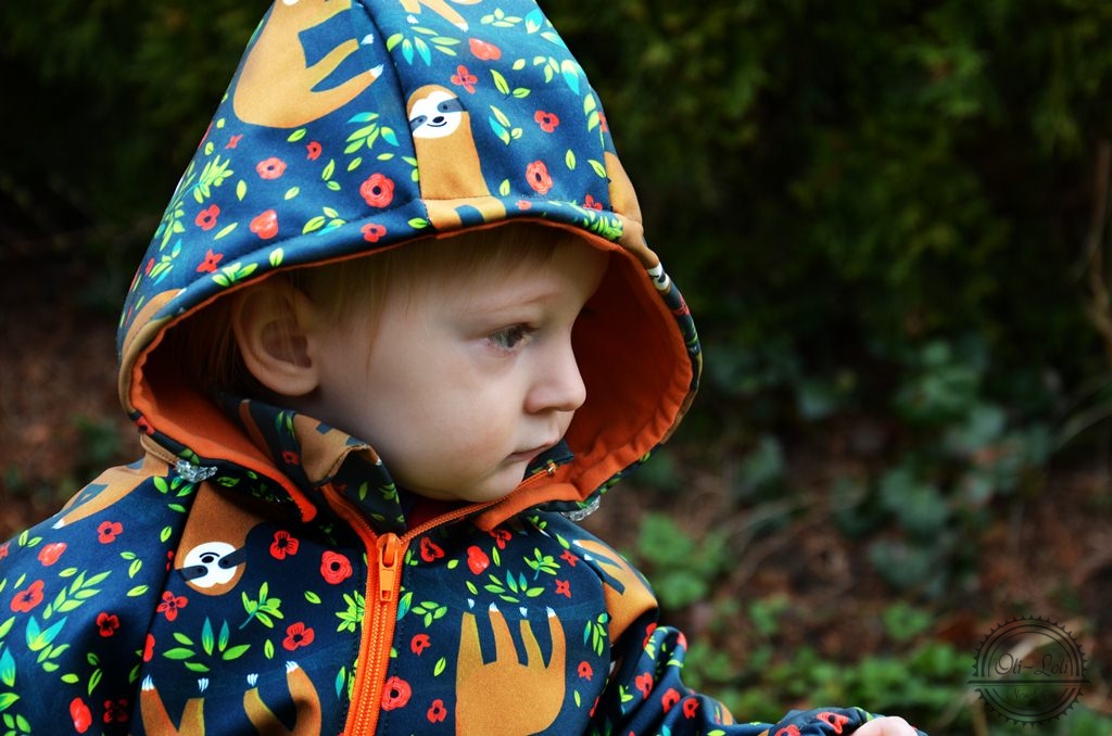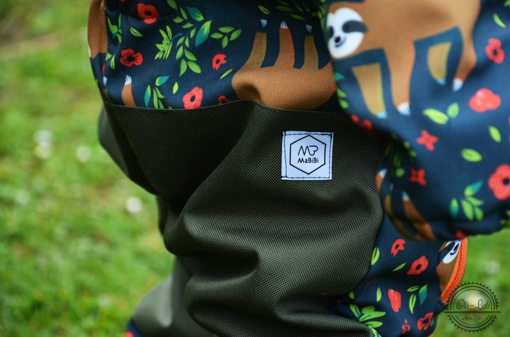 W poszukiwaniu czegoś uniwersalnego, przeszukałam internet wzdłuż i wszerz, ale też miałam konkretne wymagania. Mnie osobiście zależało aby taki kombinezon był nieprzemakalny (a nie tylko udawał), był solidny i nie rozleciał się przy pierwszym spotkaniu kolan z ziemią, do tego oczywiście kolorowy i w sensownej cenie. Softshellowy materiał to najlepsze, co można zastosować do uszycia takiego ubranka: tkanina jest bowiem wodo i wiatroodporna, oddychająca i trwała. Niekapek w leniwce (słodka nazwa, co?) jest dość luźny i spokojnie można ubrać pod niego nawet ciepłe ubranko, a dodatkowa warstwa ortalionu na pupie i nogawkach dodatkowo chroni przed wodą i zimnem. Do tej pory miałam obawy, by takiego malucha puścić “luzem” tuż po deszczu gdy mokro, wilgotno i zimno – teraz już się nie boję. Gabi ubrany w to cudeńko pomyka po placu zabaw, tapla w kałużach i mokrym piasku – ubaw po pachy! Ileż to wrażeń i nowych doświadczeń dla takiego malca! Choć rączki miał już zimne, to nie było mowy o powrocie do domu – tym razem chyba ja zmarzłam bardziej od niego 😛
