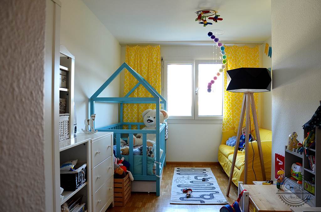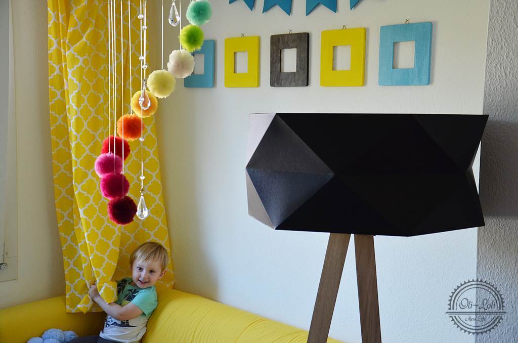 Moja nowa lampa przypadkiem zawędrowała do bajecznie kolorowego i wesołego pokoju Gabrysia. Eleganckie nogi zgrały się z drewnianymi elementami wystroju, a czarny klosz został podkreślony przez barwną sofę i zasłonki. Pozornie surowy dodatek idealnie wpasował się w delikatne dziecięce wnętrze pomieszczenia. Właściwie można powiedzieć, że to Finja natchnęła mnie do zmian, które niebawem będę pokazywać na blogu – dlatego, że to dość spontaniczna metamorfoza chwilę mi zajmie zgromadzenie wszystkich elementów nowego pomieszczenia.