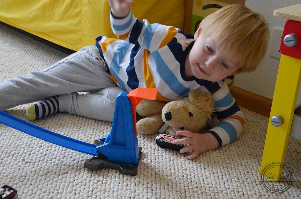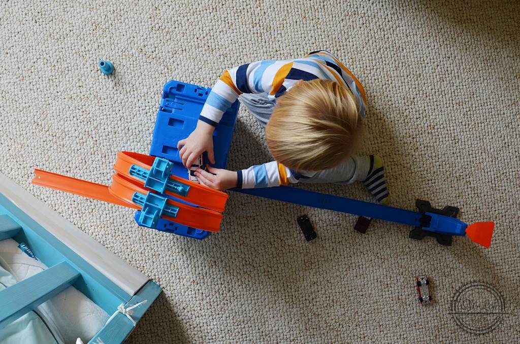 Nasz synek ma stosunkowo niewielki pokój, więc sporo miejsca zajmują same meble i skrzynie z zabawkami. Na środek kładziemy tylko mały dywanik – i jak się zużyje to nawet nie próbujemy go ratować tylko kupujemy następny 😉