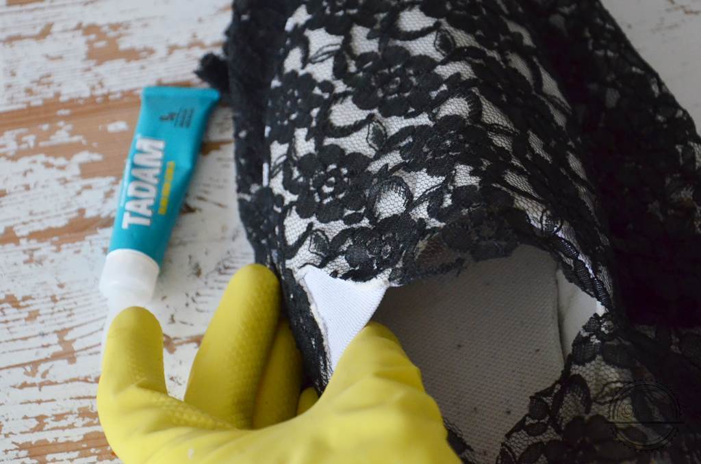 - Dokładnie przytnij koronkę do wymiarów powierzchni, którą chcesz pokryć.